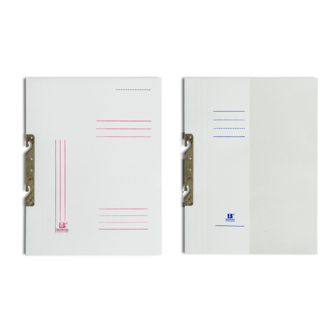 Wykonany z ekologicznej biało-szarej tektury o klasie GD, bezkwasowej o pH 7,5-9,5 oraz rezerwie alkalicznej powyżej 0,4 mol/kg. Dostępna w gramaturach: 250 g/m2, 280 g/m2, 300 g/m2 oraz 350 g/m2. – wewnątrz metalowy wąs. – wyposażony w zawieszkę umożliwiającą wpięcie do segregatora. – dostępny z okładką wierzchnią całą oraz okładką wykonaną z połowy formatu. – dostępne również bez nadruku; – pakowane po 50 szt. – format A-4.