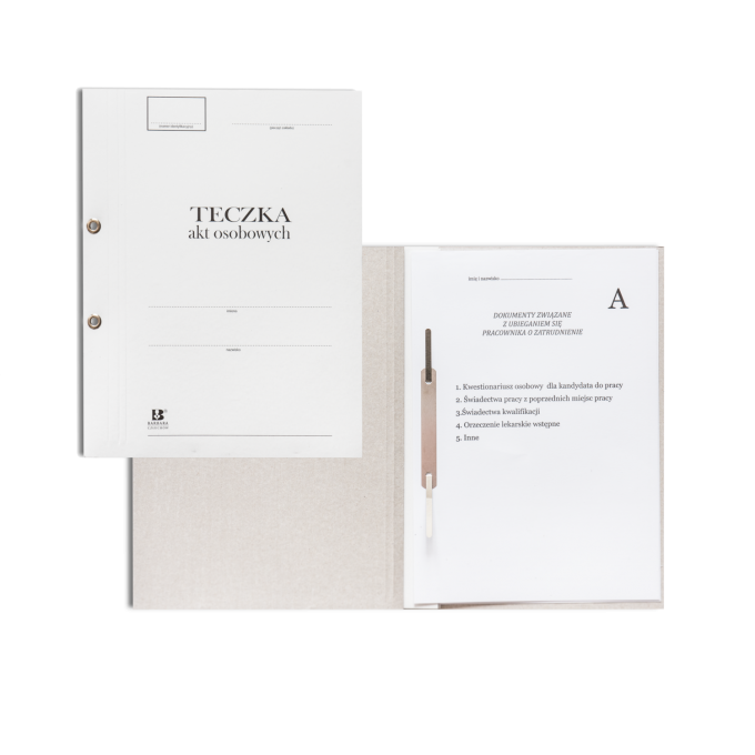 – Teczka na zewnątrz posiada miejsca opisowe na personalia.